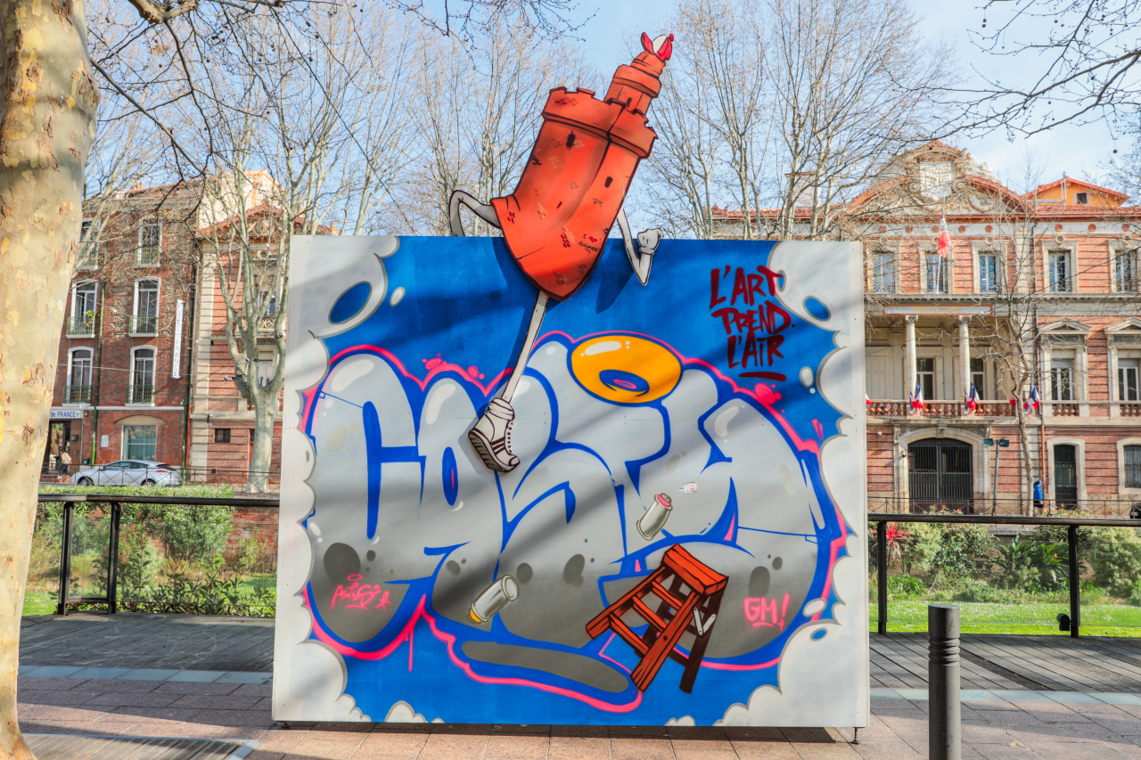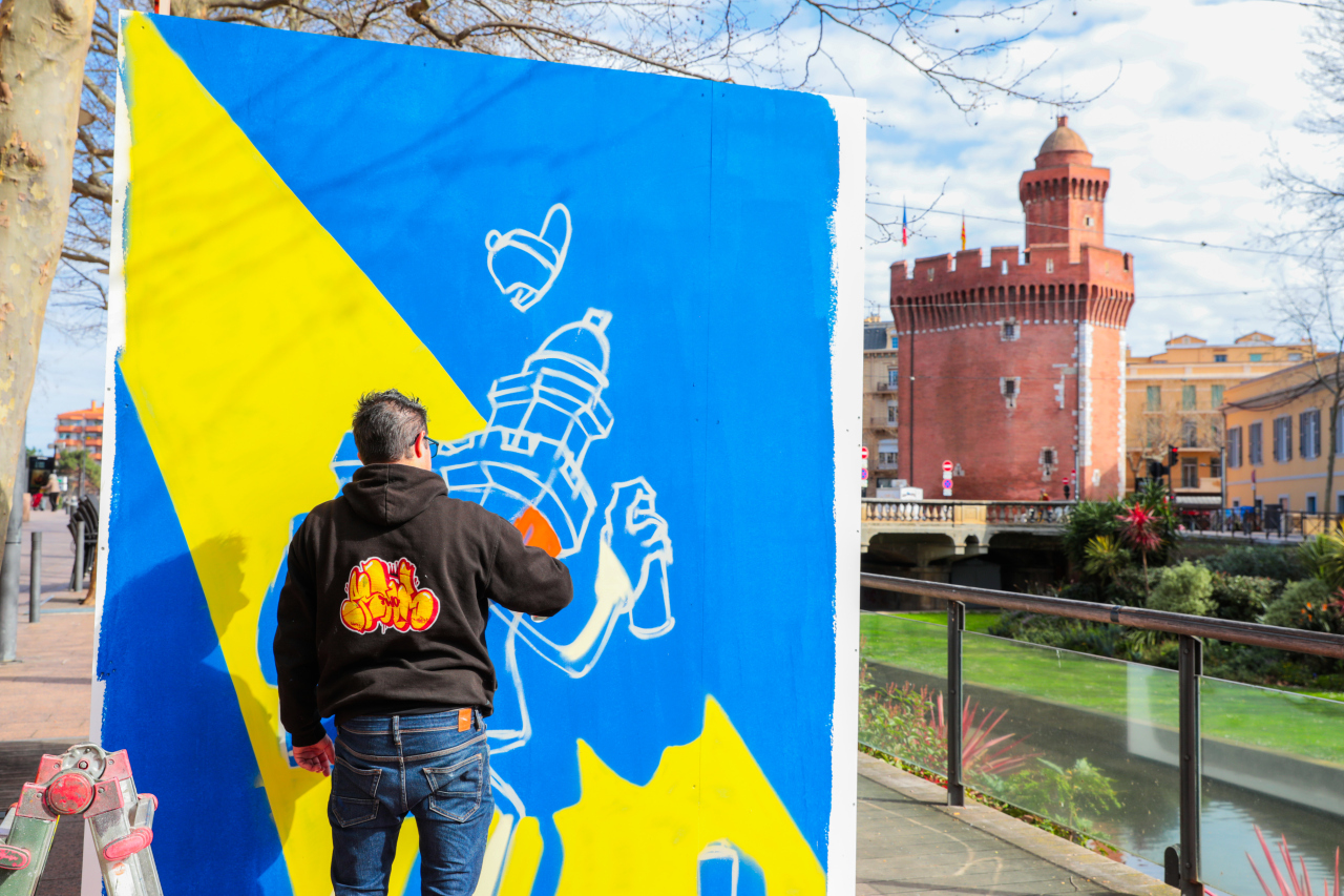 Artiste graffeur et plasticien, Astus2 vit et pratique son art à Perpignan et au niveau international depuis plus de vingt ans. Il travaille sur différents supports et formats. Son univers s’inspire du graphisme coloré et dynamique des cartoons où se mêlent personnages et lettrages colorés. Sa démarche n’est pas tant de délivrer un message que de provoquer une émotion, un sourire… Une occasion d’offrir aux yeux du plus grand nombre un instant de plaisir. (@jeromesalas)