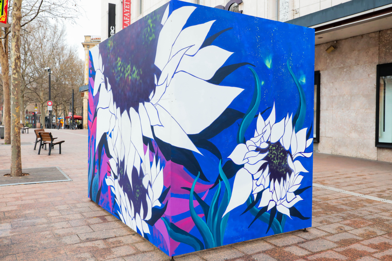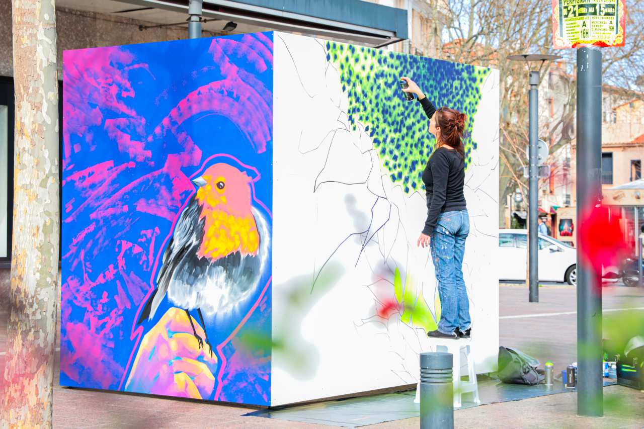 Originaire de la région Rhône-Alpes, LUCCE s’installe à Toulouse où elle commence le travail à la bombe aérosol en 2001. La peinture et le dessin font partie de sa vie depuis son plus jeune âge et peindre dans la rue lui ouvre de nouvelles perspectives : la liberté du geste et du format et le partage immédiat, que ce soit pour une création commune ou pour le plaisir d’échanger avec les passants. Sa spécialité, le trompe-l’œil qu’elle développe en tant que professionnelle depuis près de quinze ans. (https://lucceart.wixsite.com/lucce)