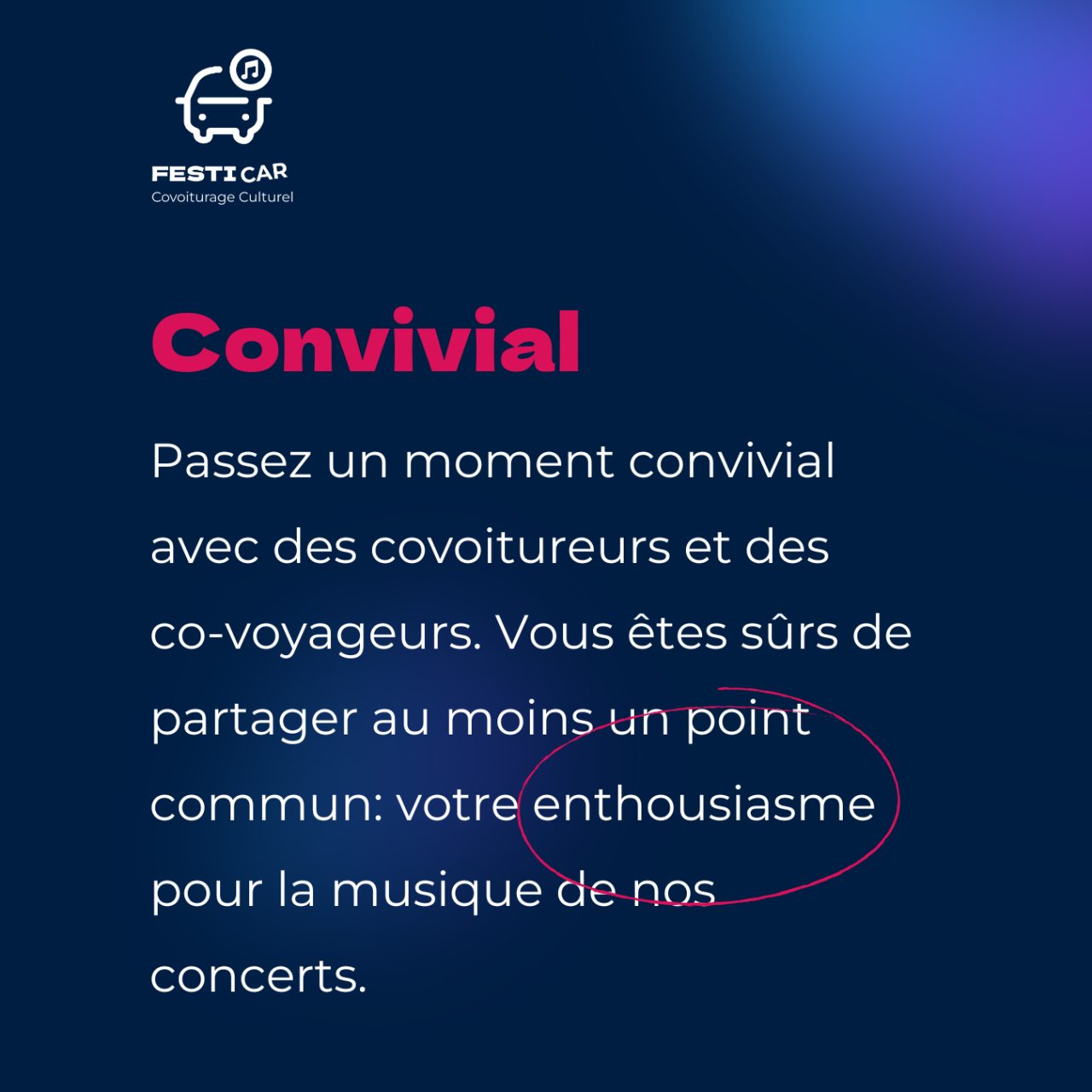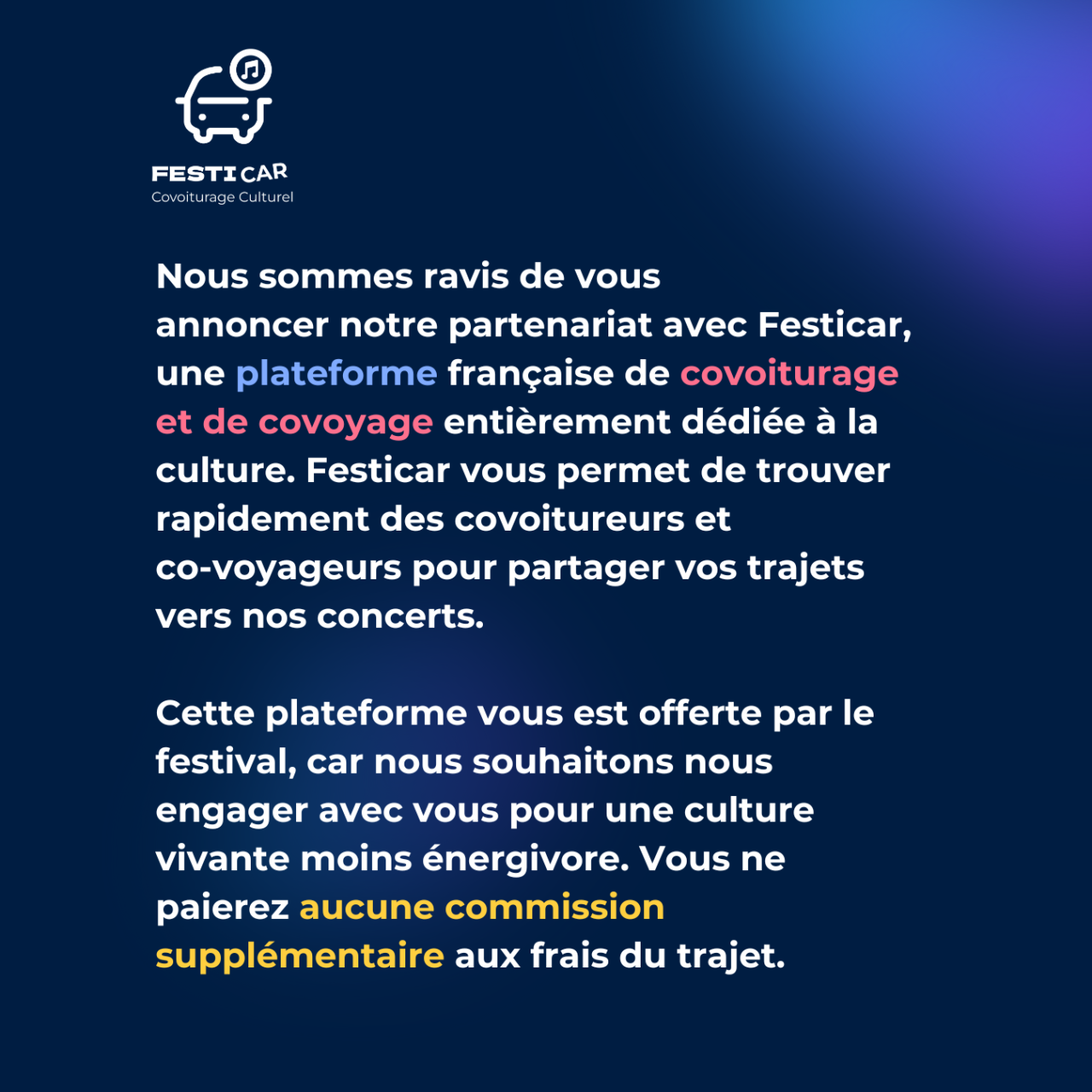 Avec [ FestiCar ] · partagez la route en covoiturant avec d'autres festivaliers.