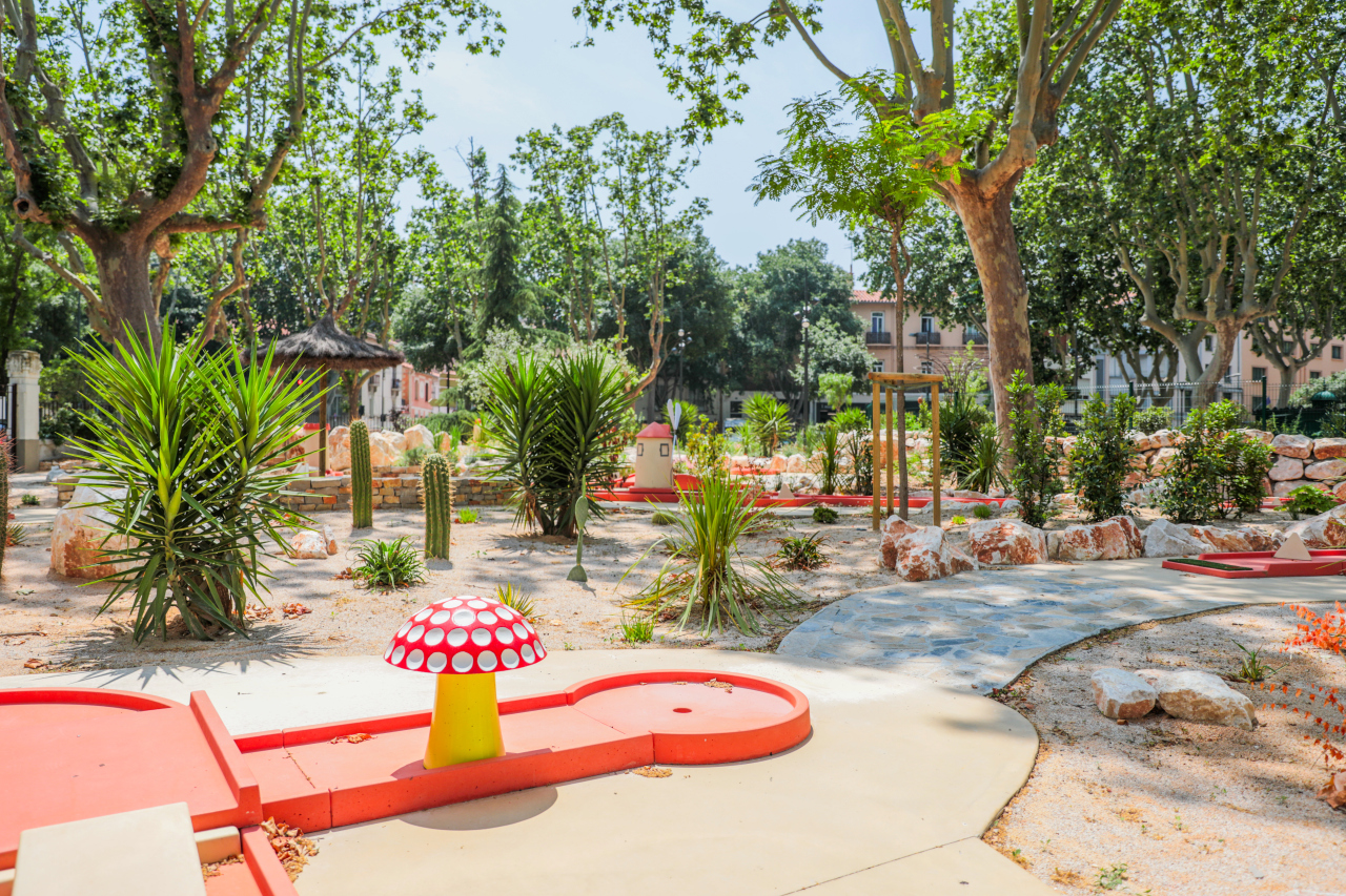 L'espace situé au square Bir Hakeim accueille désormais une activité organisée autour d’un mini-golf urbain de 18 trous, parfaitement Intégré dans son environnement paysager. Un éventail de plantes méditerranéennes organisées autour d’enrochements est disposé tout au long du parcours et bénéficie d’un éclairage d’ambiance. Un kiosque à l’architecture parisienne dispose d’une terrasse extérieure permettant de garantir l’accueil de la clientèle avec la possibilité de développer un petit goûter. Les perpignanais et visiteurs apprécieront le bassin historique rénové avec sa remise en eau. Quelques bancs favorisent une halte, ou le repos sous les ombrières végétalisées, offrant fraîcheur et bien-être dans ce cadre apaisé. Enfin des petits bateaux électriques sont proposés aux plus petits.
