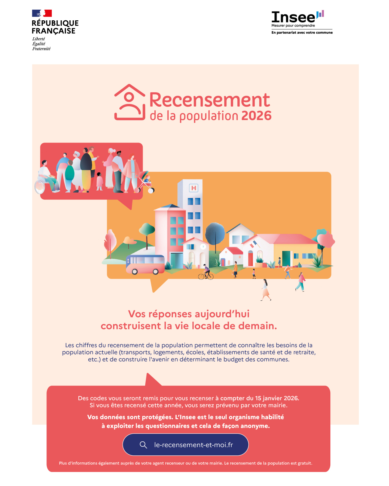 Votre participation est essentielle. Le Recensement de la Population est un devoir civique simple et utile à tous.