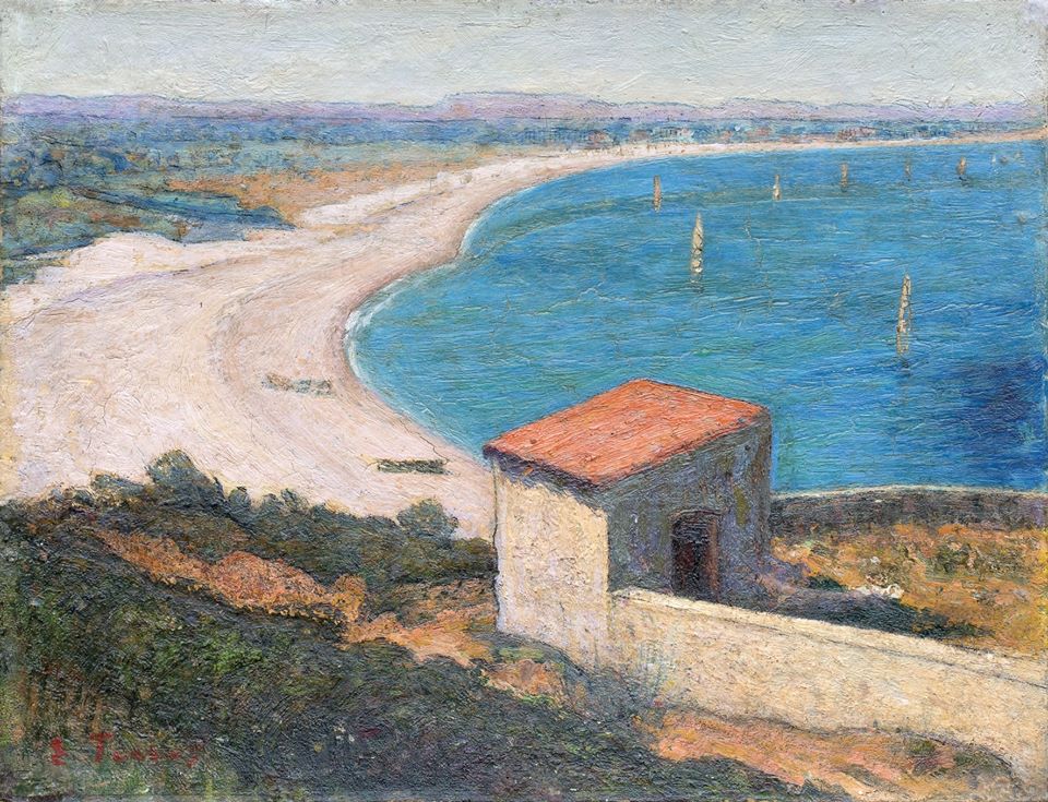 S'enivrer des paysages d'Etienne Terrus (1857-1922), paysagiste sensible et inlassable de sa terre natale, ici l'anse du Racou sillonnée de barques de pêche et la plage d'Argelès qui s'étend au loin.