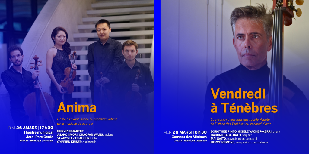 Les concerts Mosaïque sont en accès libre. Possibilité d’accès au concert 30 minutes avant le début du concert sans réservation. Placement libre dans la limite des places disponibles.
