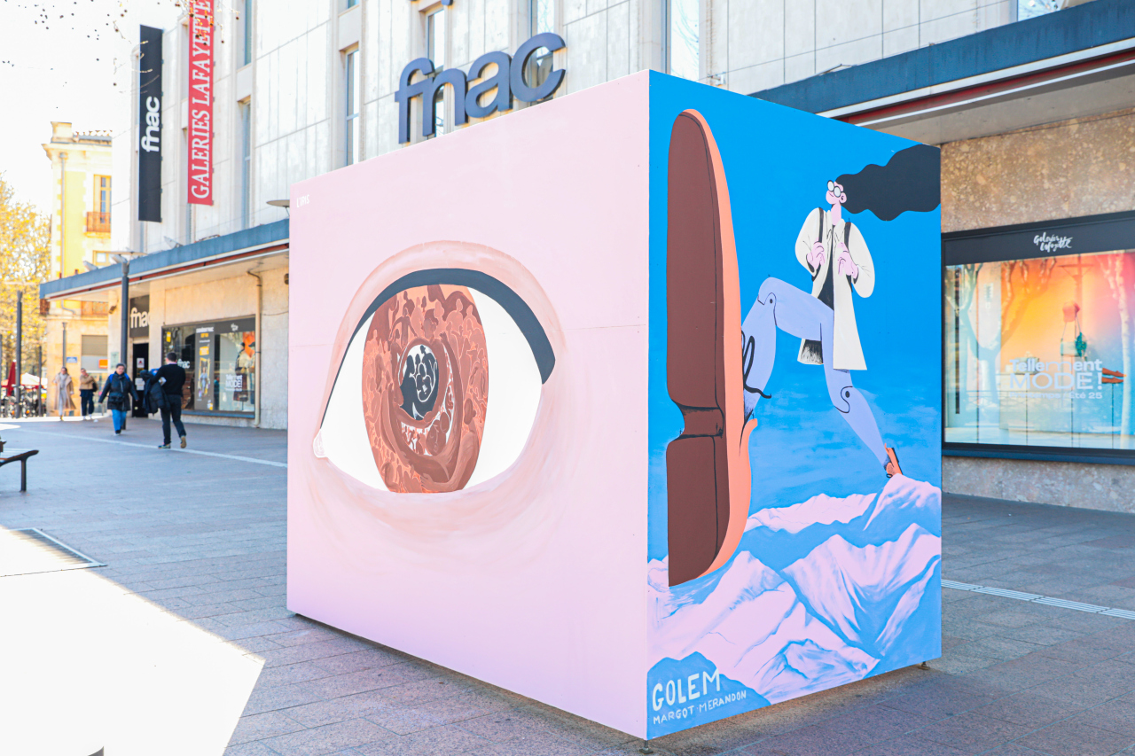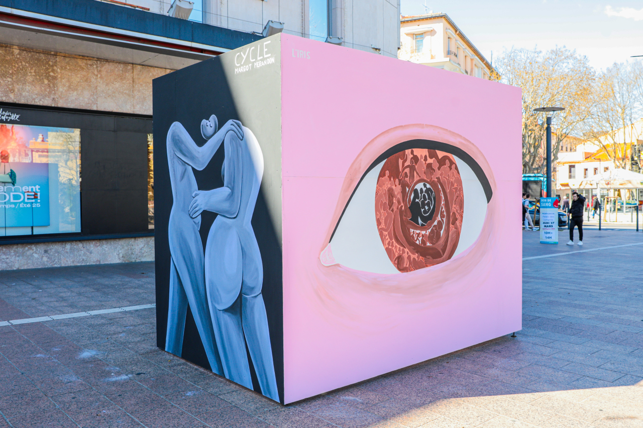 Margot Merandon est une artiste plasticienne inspirée qui travaille à Montpellier. Plusieurs de ses œuvres sont visibles dans l’espace public mais son talent s’exprime aussi au travers de différents médiums plus classiques. Empreint de poésie et d’humour, son univers manifeste le monde dans lequel elle voudrait vivre : une société queer, écoresponsable, multiculturelle et funky. Ses fresques sont aussi visibles à Sète, Perpignan et Bruxelles. (margotmerandon.com)