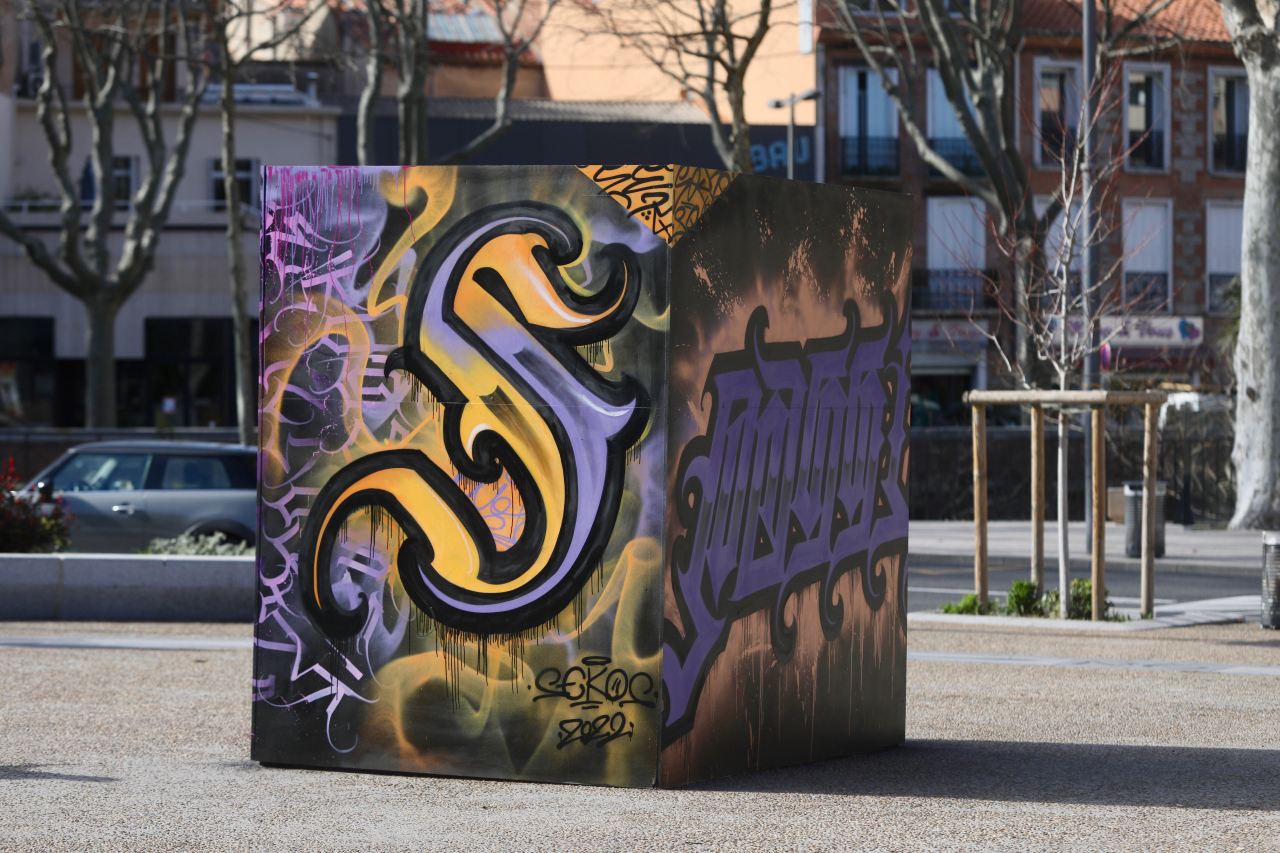 Originaire de Normandie, Sekos a pas mal bougé ces dernières années. Tatoueur de métier, il vient s’installer à Perpignan en 2018. En graffiti, il aime particulièrement travailler les lettrages quel que soit le support : un mur, une board ou de la peau. Il s’attache avec le trait et la couleur à décliner les différentes calligraphies et styles graphiques pour passer un message dans la sphère publique ou intime. (@sekosbagt)
