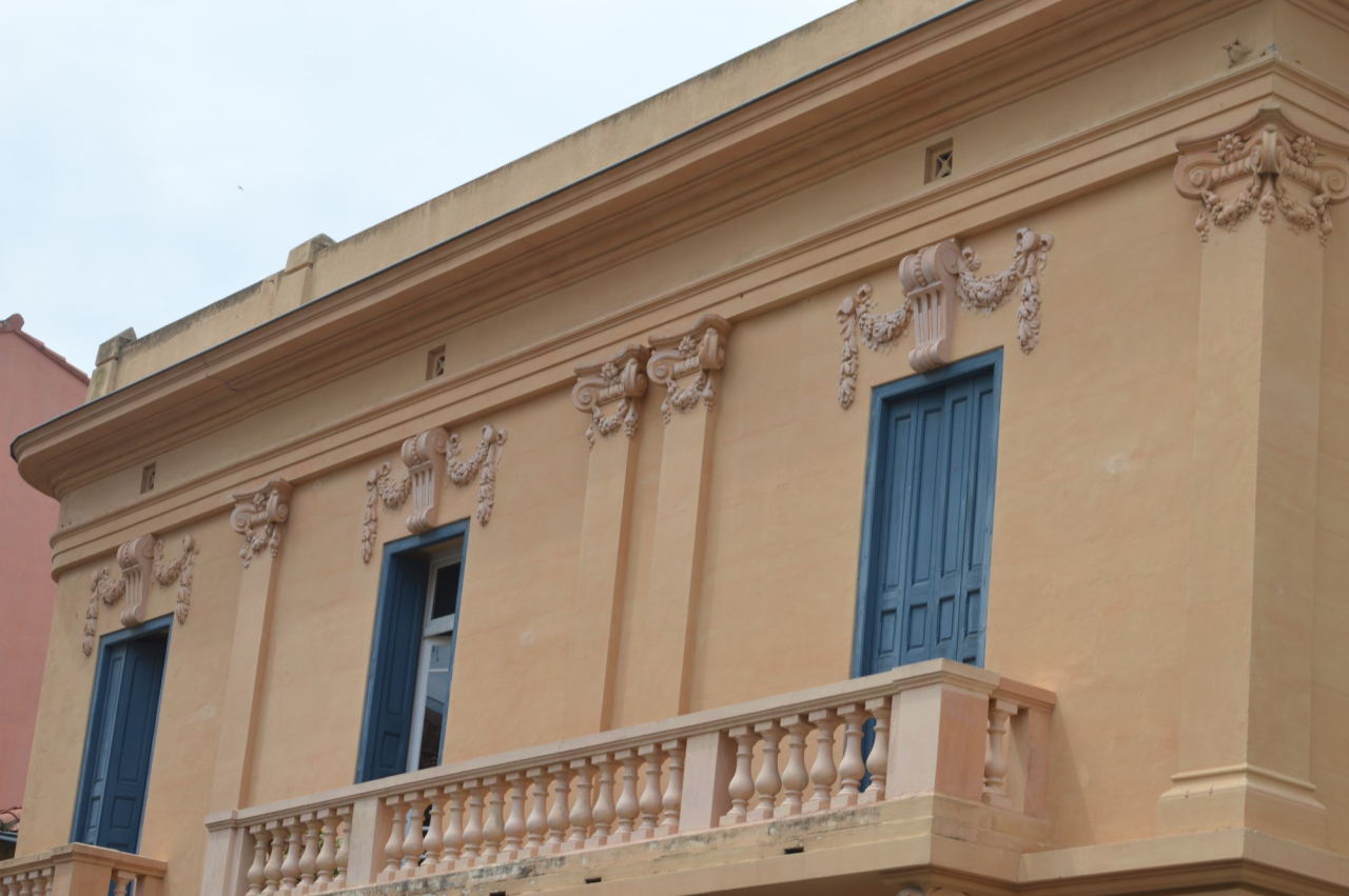 Description : Composition académique : Corniches, pilastres, balcons et bossages continus au rez-de-chaussée.