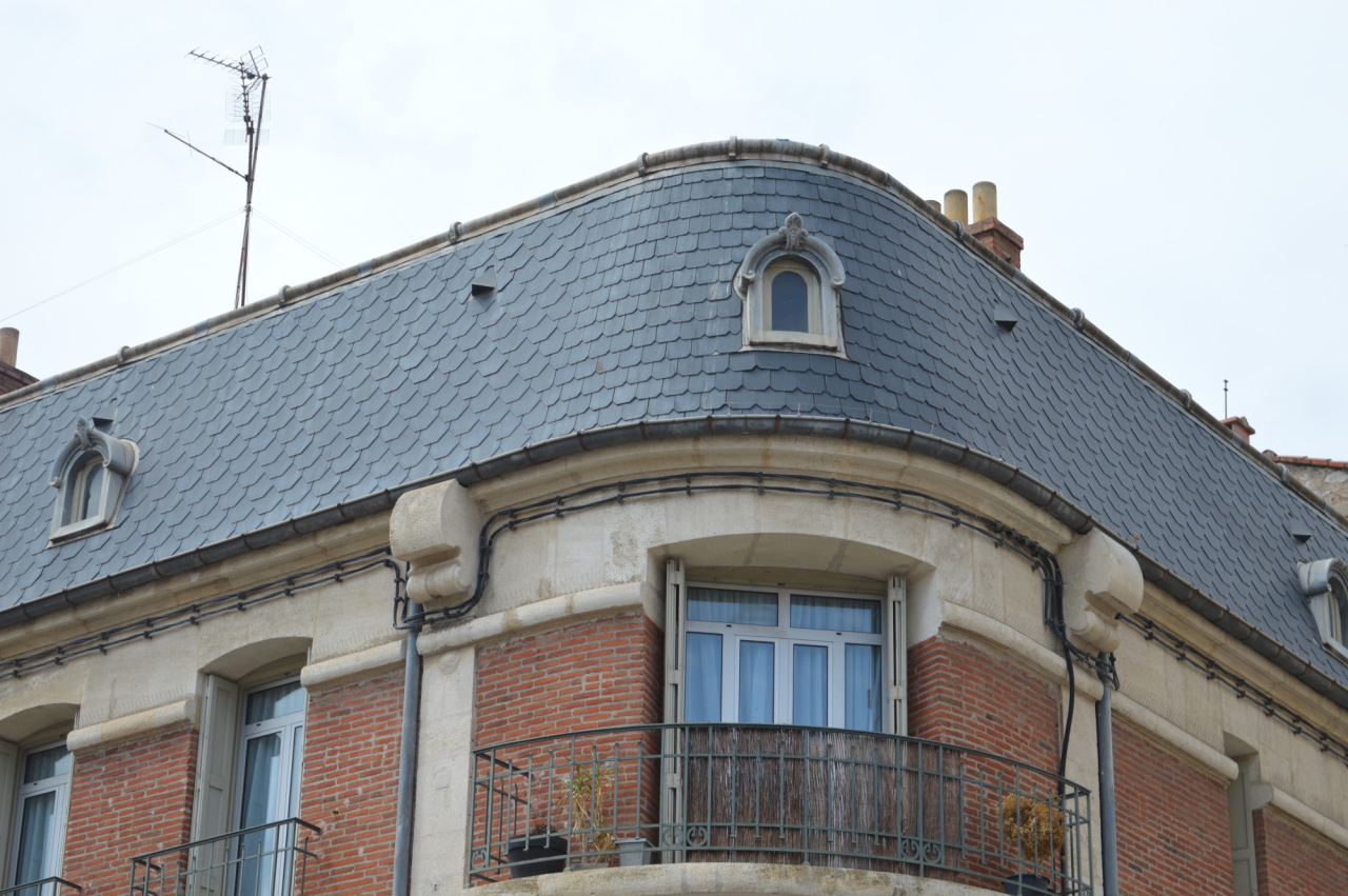Description : Influence classique avec la rotonde d’angle et la toiture en ardoise.