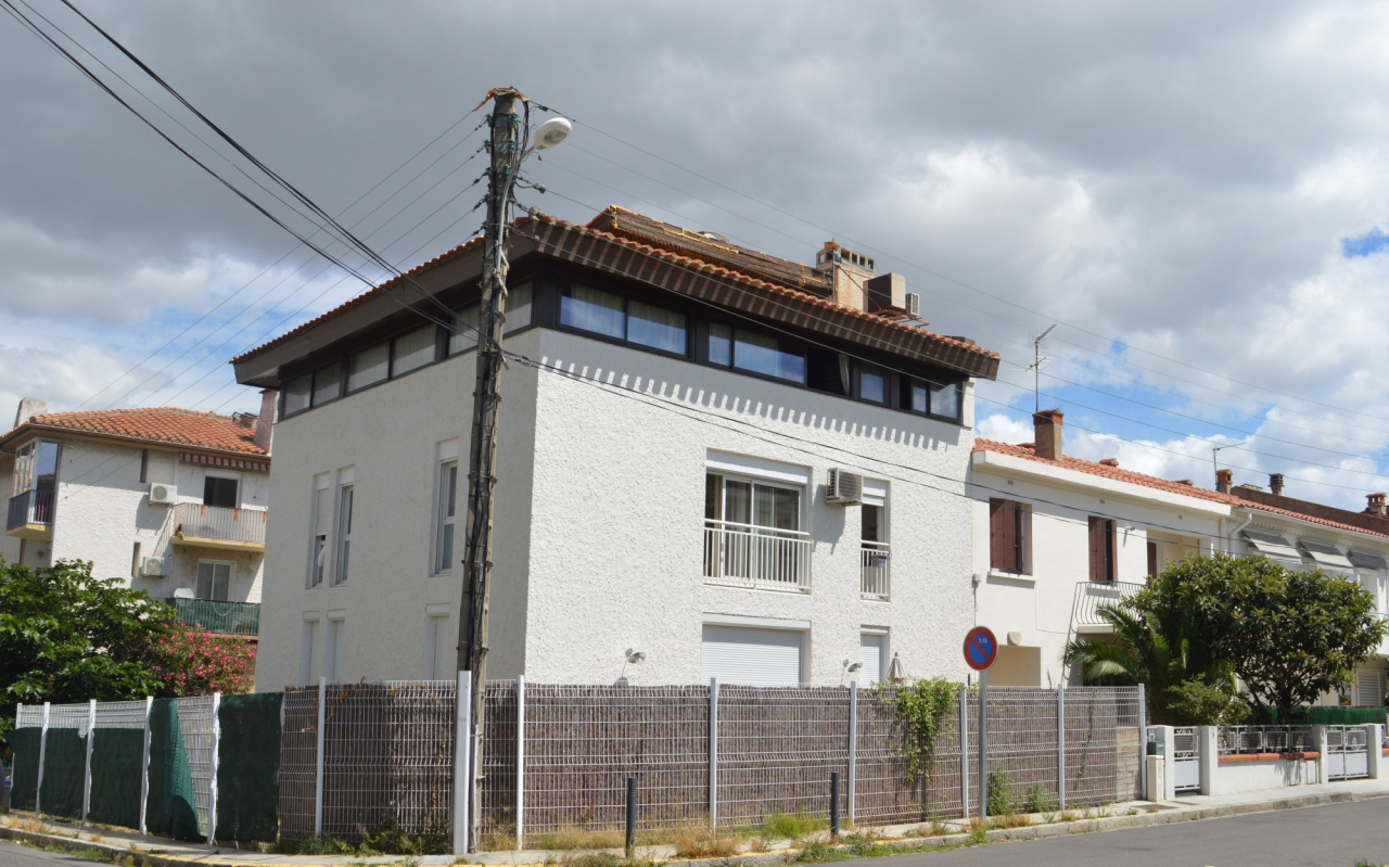 Description : Style postmoderne : Volets roulants, composition hiérarchisée, toit-terrasse et loggia au dernier étage.