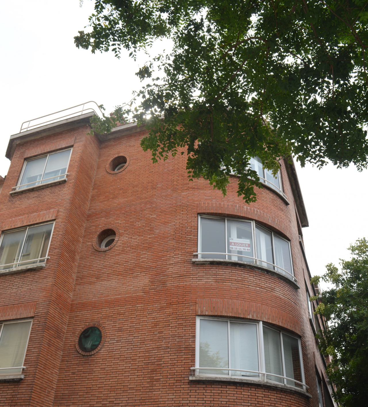 Description : Style Art déco de type paquebot avec l'angle arrondi de l'immeuble, les fenêtres horizontales, les oculi et le contraste de matériaux entre la brique et le béton.