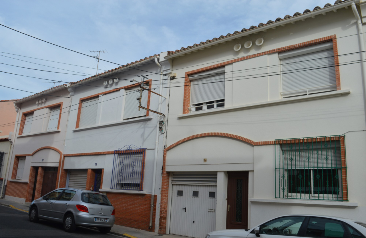 Description : Habitations individuelles en bandes, avec une disposition identique de la façade. Le contraste de la brique et du béton est une caractéristique du style Art déco.