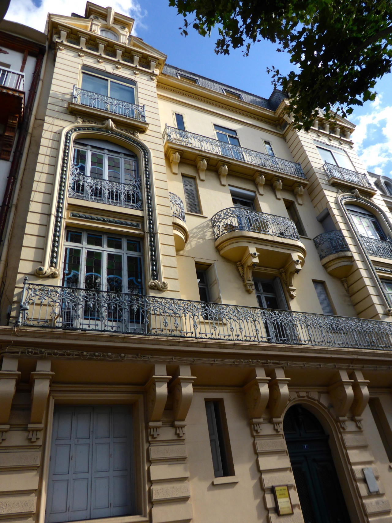 Description : Architecture classique : Consoles et entablements décoratifs, balcons arrondis en fer forgé, lucarnes et toiture en ardoise.