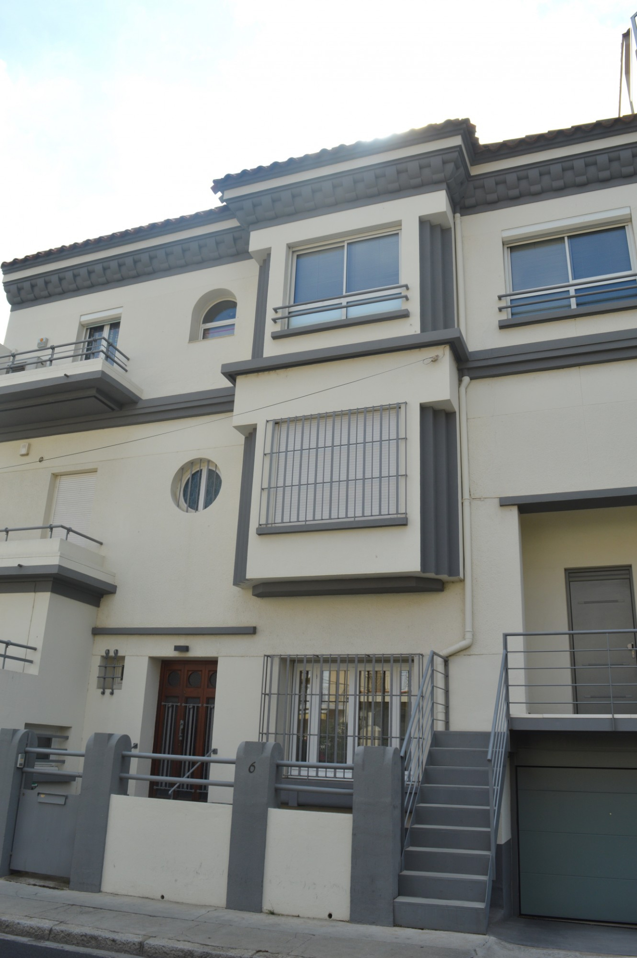 Description : Ressemblance avec une grande maison de ville, mais deux entrées avec deux garages présents.