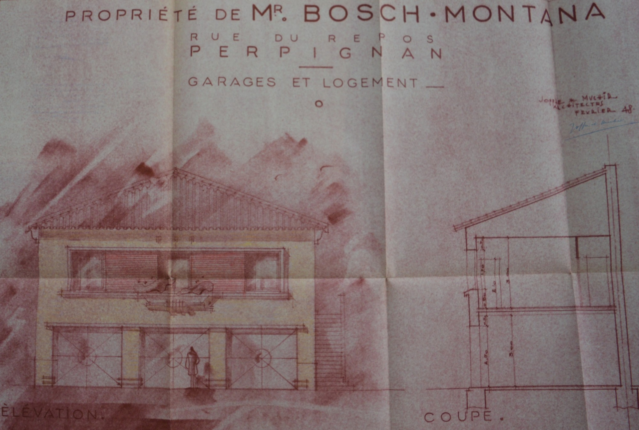 Commanditaire : Mme et M. Bosh-Montana : M. Bosch-Montana est un industriel qui a également commandé à Alfred Joffre et Férid Muchir de construire des garages avec un logement pour ouvrier à l’étage, à la rue du Repos. Ces bâtiments ont aujourd'hui disparu.