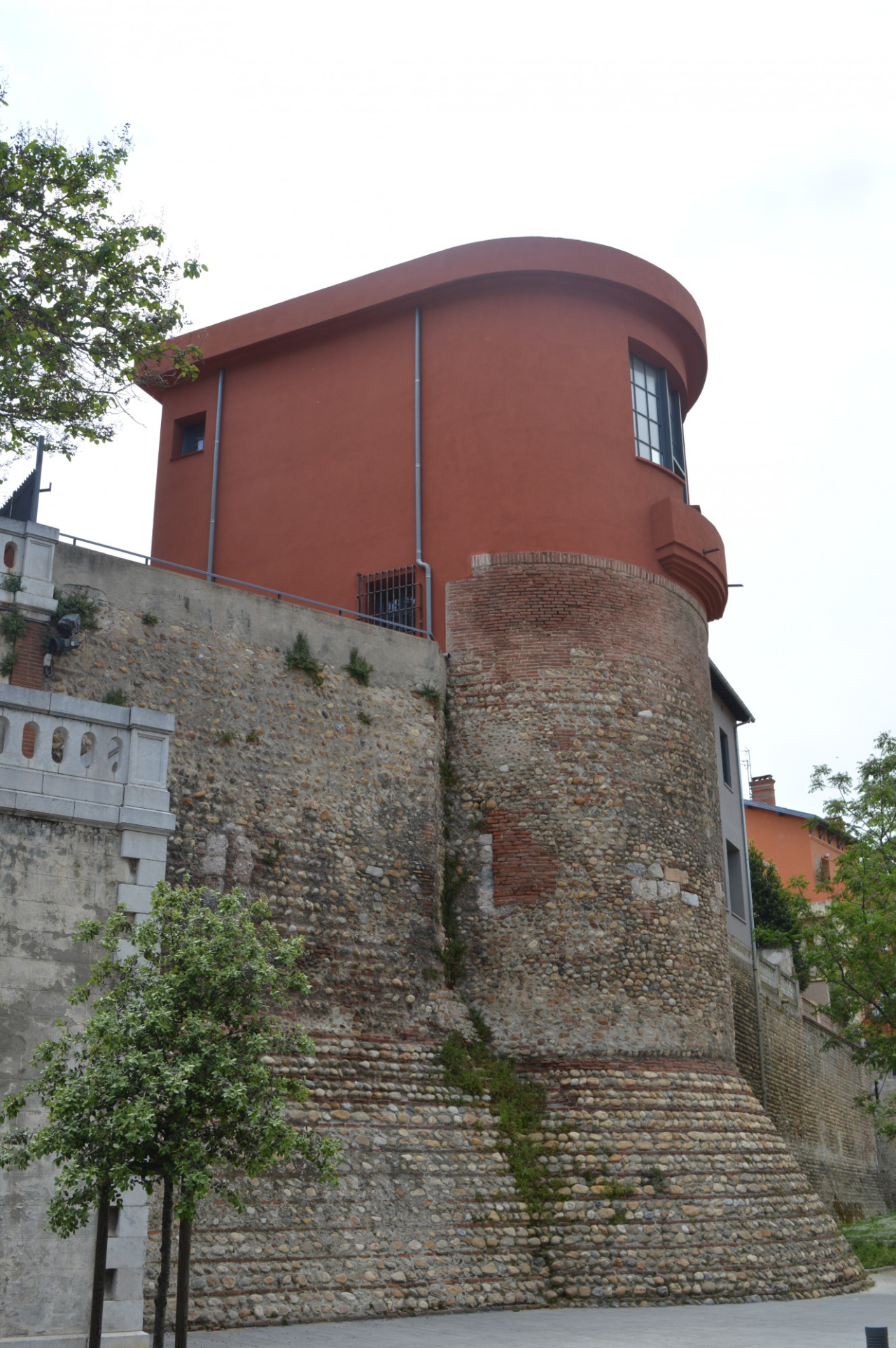 L'édifice est construit sur un vestige d’une des tours des remparts médiévaux.