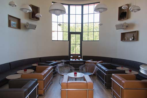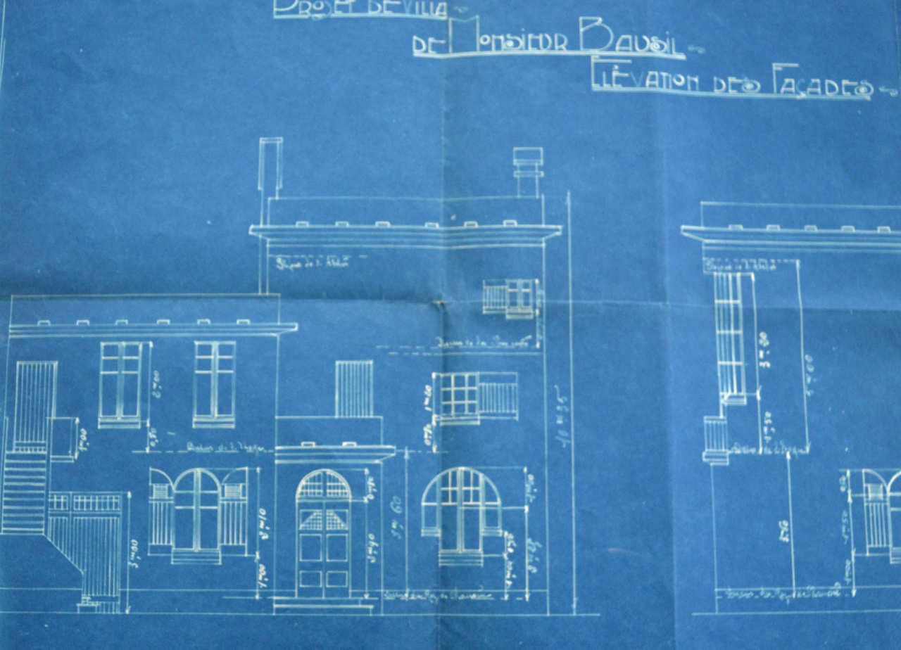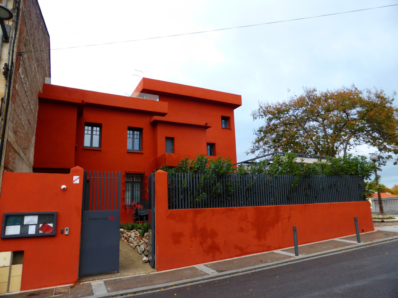 Architecture moderne, avec les volumes cubiques de la façade avant, le toit-terrasse et la rotonde d’angle arrière.