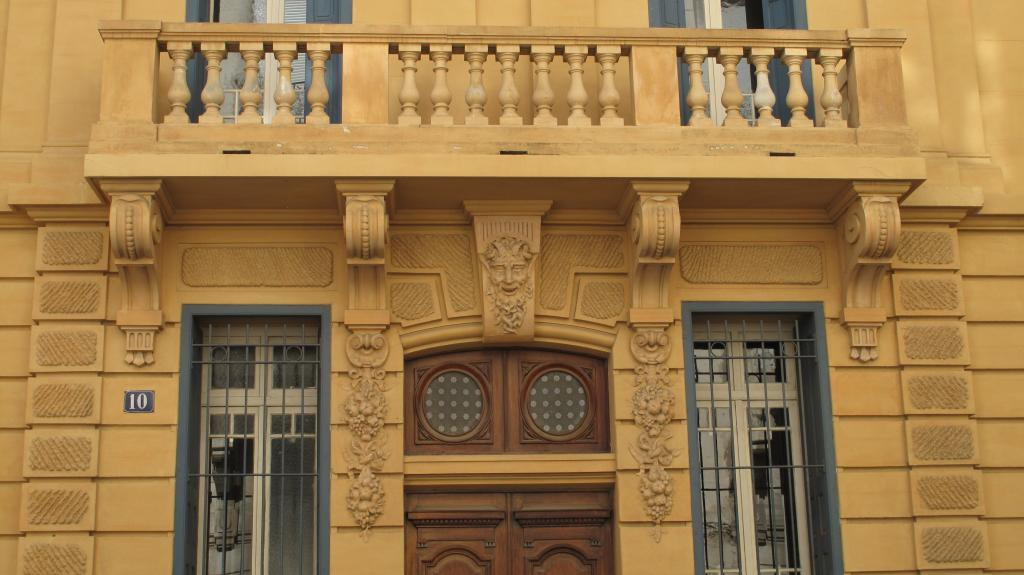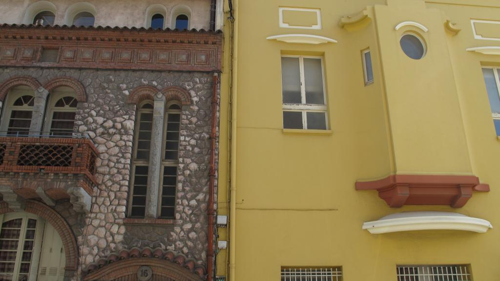 Dans ce carrefour du nouveau quartier nord de la ville, une diversité d'options stylistiques de l'architecture du début du 20e siècle est réunie : l'historicisme de racine classique de la maison Nicolau (N°10 rue B.., 1922), la grande manière de l'immeuble de rapport qui lui fait face (N° 11 rue J., 1915), l’immeuble au répertoire médiévalisant d’Henri Sicart (N° 13 rue J.), le régionalisme roussillonnais à la manière de Mas Chancel dans l'hôtel particulier (N° 16 rue J., 1916), enfin l'épuration géométrique et la volonté monumentale dans l'édifice de l'Union des commerces des architectes Alfred Joffre et Raoul Castan (N° 9 rue B., 1925).