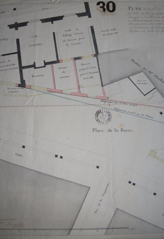 La Barre était un des marchés les plus importants de la ville médiévale. Le nom de « Barre », né au 14e siècle, évoque le fait que les pièces de viande étaient suspendues pour la vente sur des barres de fer tendues entre les colonnes. En face, se trouvait la place de la boqueria, marché aux bœufs, à l’emplacement du premier marché de Perpignan, lo macell major, sur lequel a été édifiée la maison consulaire. Un peu plus loin se tenait le marché aux œufs et aux gallinacées, la gallinaria. La rue de la Barre a toujours été bordée d'une galerie couverte, mais les colonnes actuelles datent de 1875.