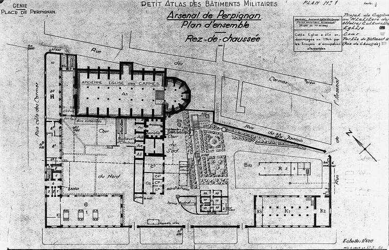 Du grand couvent des Carmes édifié vers le milieu du 13e siècle ne subsistent que les vestiges de l’église Sainte-Marie, fortement endommagée par une explosion et un incendie en 1944, le chœur et la nef s’étant effondrés vingt ans plus tard. En partie loués à l’Armée au début du 18e siècle, les bâtiments conventuels furent transformés en arsenal en 1792. Le cloître, démonté et vendu en 1838, fut reconstitué chez un châtelain, dans l’Aude : un marquage au sol en indique l’emplacement. Des fouilles archéologiques, au début du 21e siècle, révélèrent l’existence d’une crypte du 15e siècle devant le chœur.