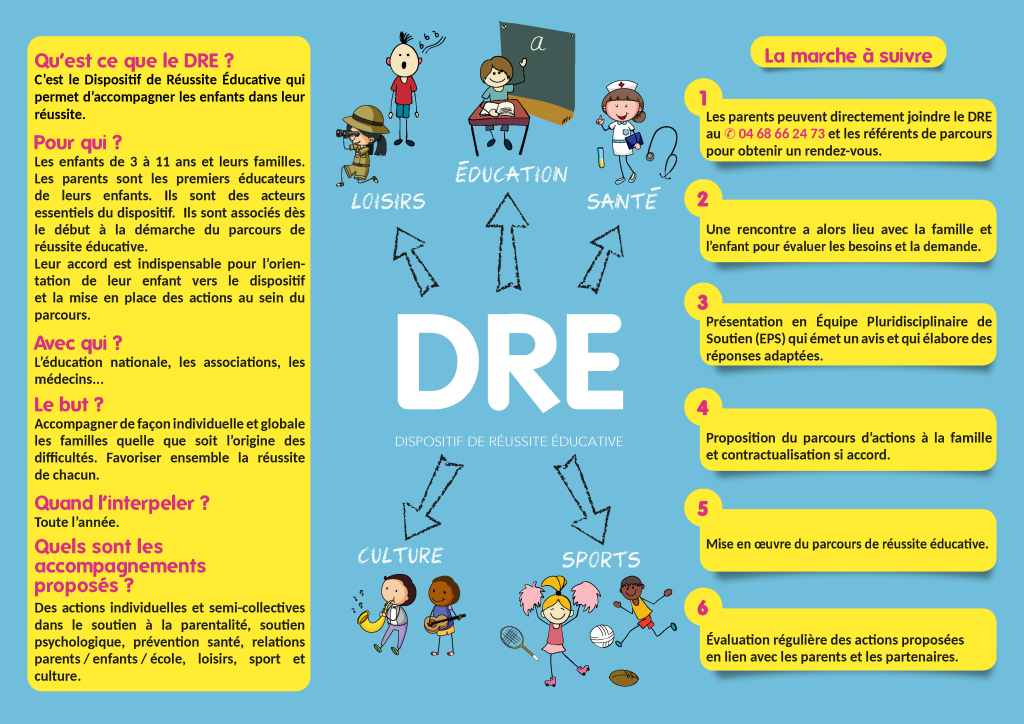 Le DRE vise à soutenir les enfants ne bénéficiant pas d’un environnement social, familial et culturel favorable à leur réussite, à accompagner ceux qui présentent des signes de fragilité en prenant en compte la globalité de leur environnement.