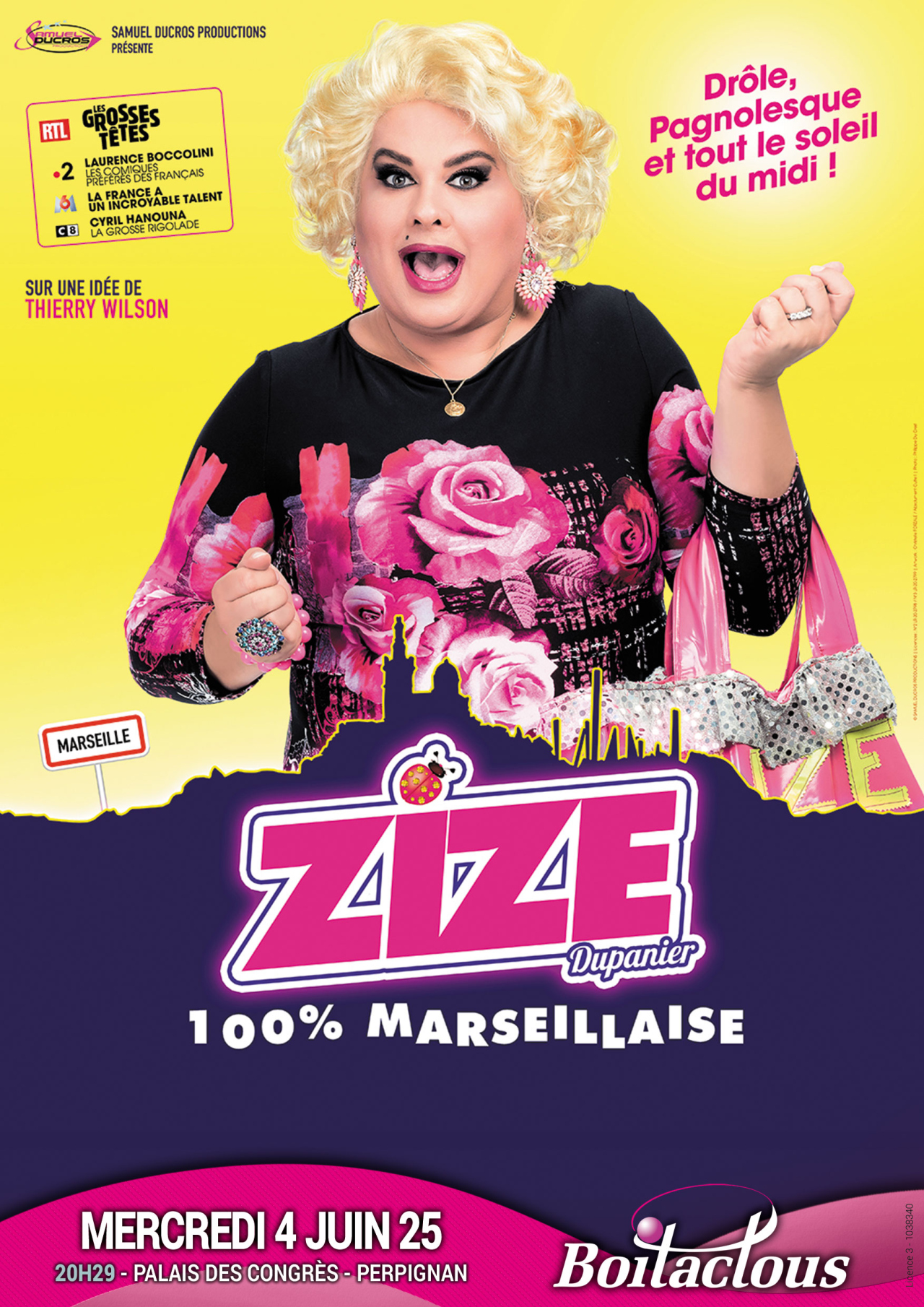 Ahhh comme elle lui manque la gloire à Zize ! … Certes, les années ont passé, laissant quelques traces mais elle, elle se souvient d’avoir été « Miss Pointe Rouge », d’avoir été le sosie officiel de Madonna, elle a encore en tête ces milliers de fans qui l’acclamaient dans les campings et lui donnaient tout l’amour du monde. Et même si elle est mariée aujourd’hui, rangée dans une petite vie presque sage, elle ne dirait pas non à une nouvelle tournée pour relancer sa carrière. Là, tout de suite, elle est prête à renfiler son costume, un peu trop voyant, un peu trop sexy, à se remettre en tête ses chorégraphies exubérantes et flamboyantes, pour mettre un peu de ce soleil 100% marseillais au-dessus de la tête de son public chéri. On la connaît Zize, on sait qu’elle est une fresque pagnolesque à elle toute seule mais peu importe car qu’elle chante, qu’elle danse, qu’elle nous présente sa famille toute entière ou sa bonne ville de Marseille, on se noie avec délectation dans son verbe un peu trop haut, dans ses manières un peu trop voyantes et dans sa sensibilité à fleur de peau.